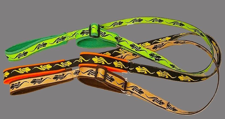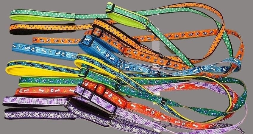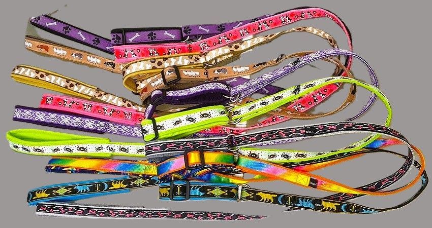 Grosse Auswahl an Agility- Retriever-Leinen , Halsbad verstellbar, Halsband und Handschlaufe mit Softshell oder Fliess unterlegt.